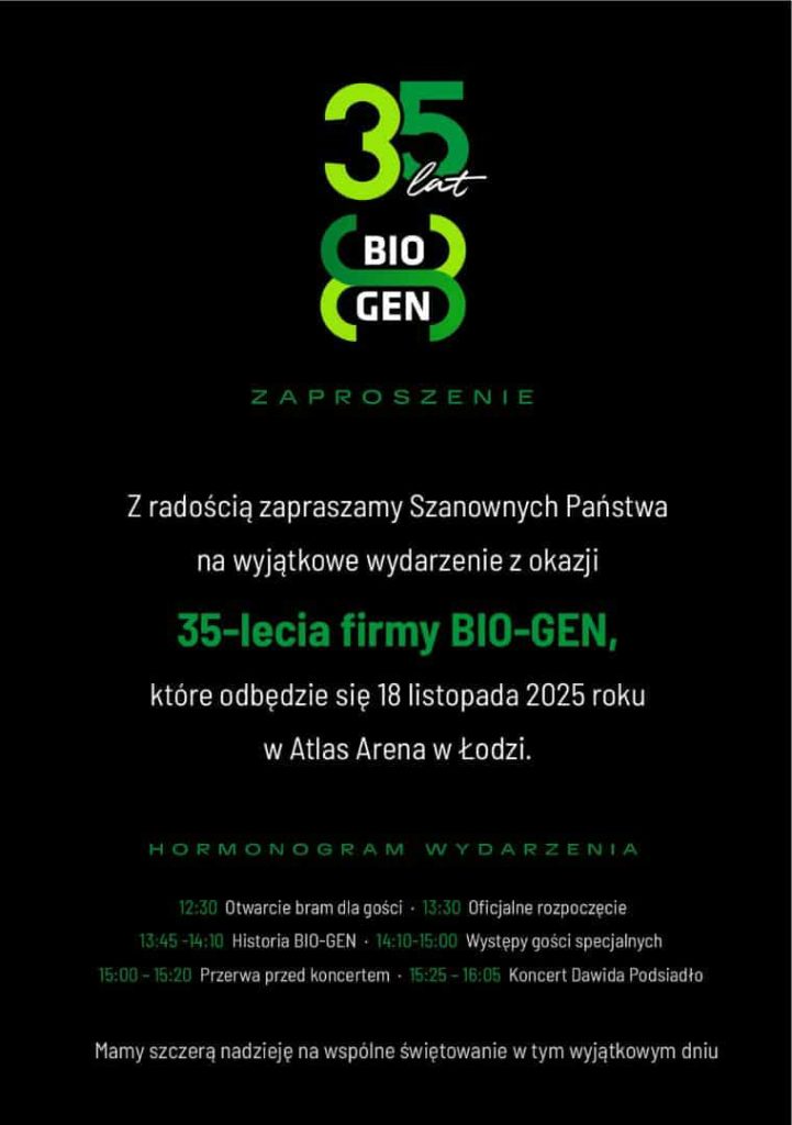 Studenci Koła Naukowego Rolników działającego przy Wydziale Rolnictwa i Ekologii SGGW w dniu 18.11.2025 wzięli udział w uroczystościach 35-lecia firmy BIO-GEN, które odbyło się w Atlas Arenie w Łodzi.
